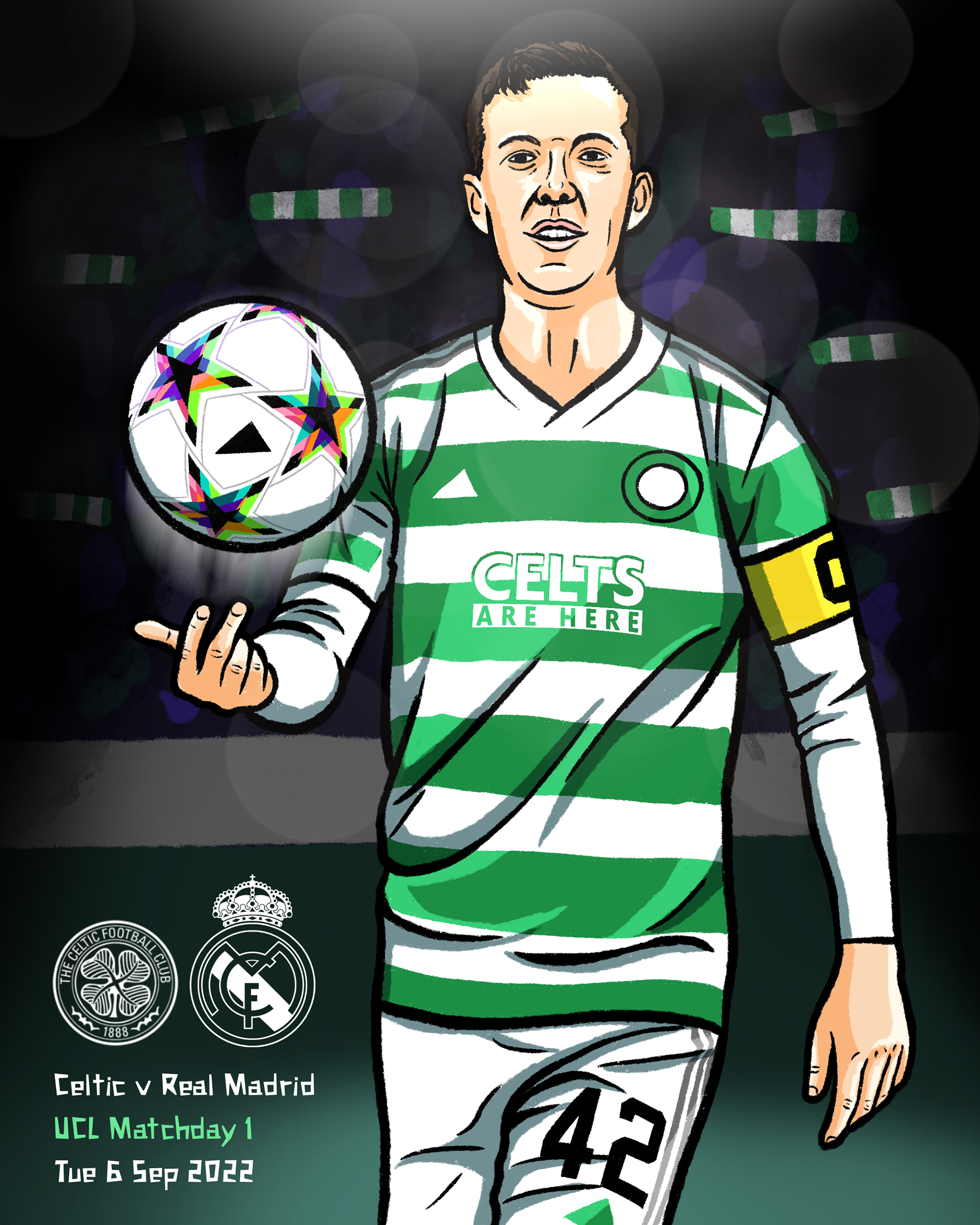 For CeltsAreHere, a social media fan page dedicated to Celtic FC, I created matchday illustrations for all 6 Champions League groupstage matches during the 2022-23 season. As a Celtic fan myself, I was really excited to make content for this page!