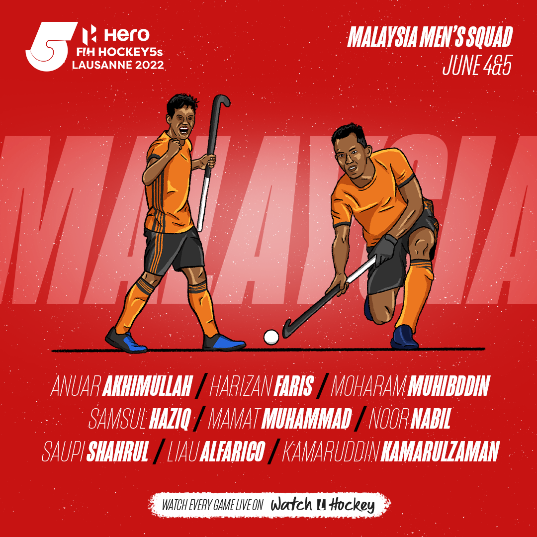 For the buildup towards the FIH Hockey 5s 2022 I was asked by Curveball digital to create visuals presenting all the teams. The visuals had to include two players of each team, alongside the player names of the full squad.